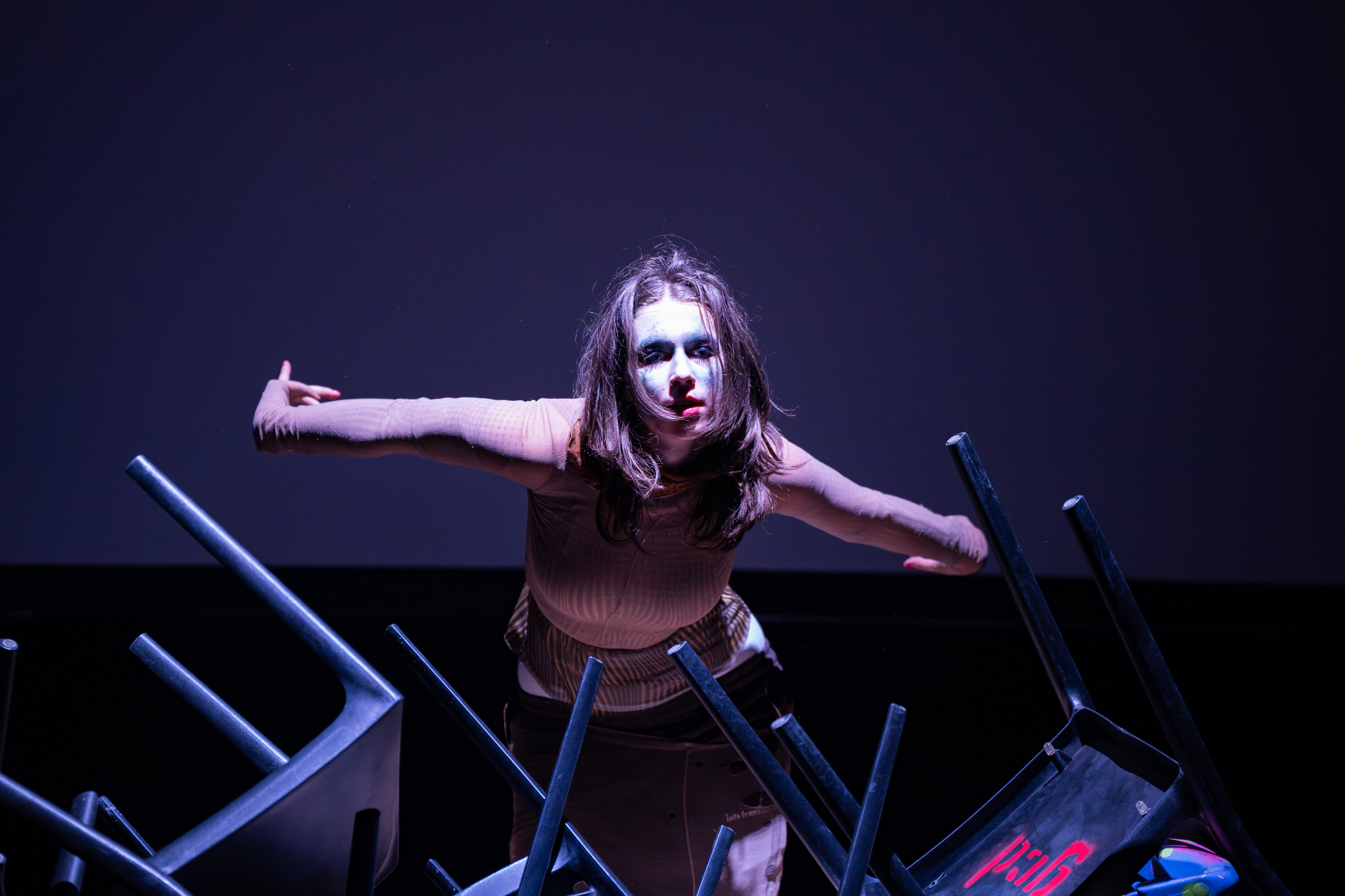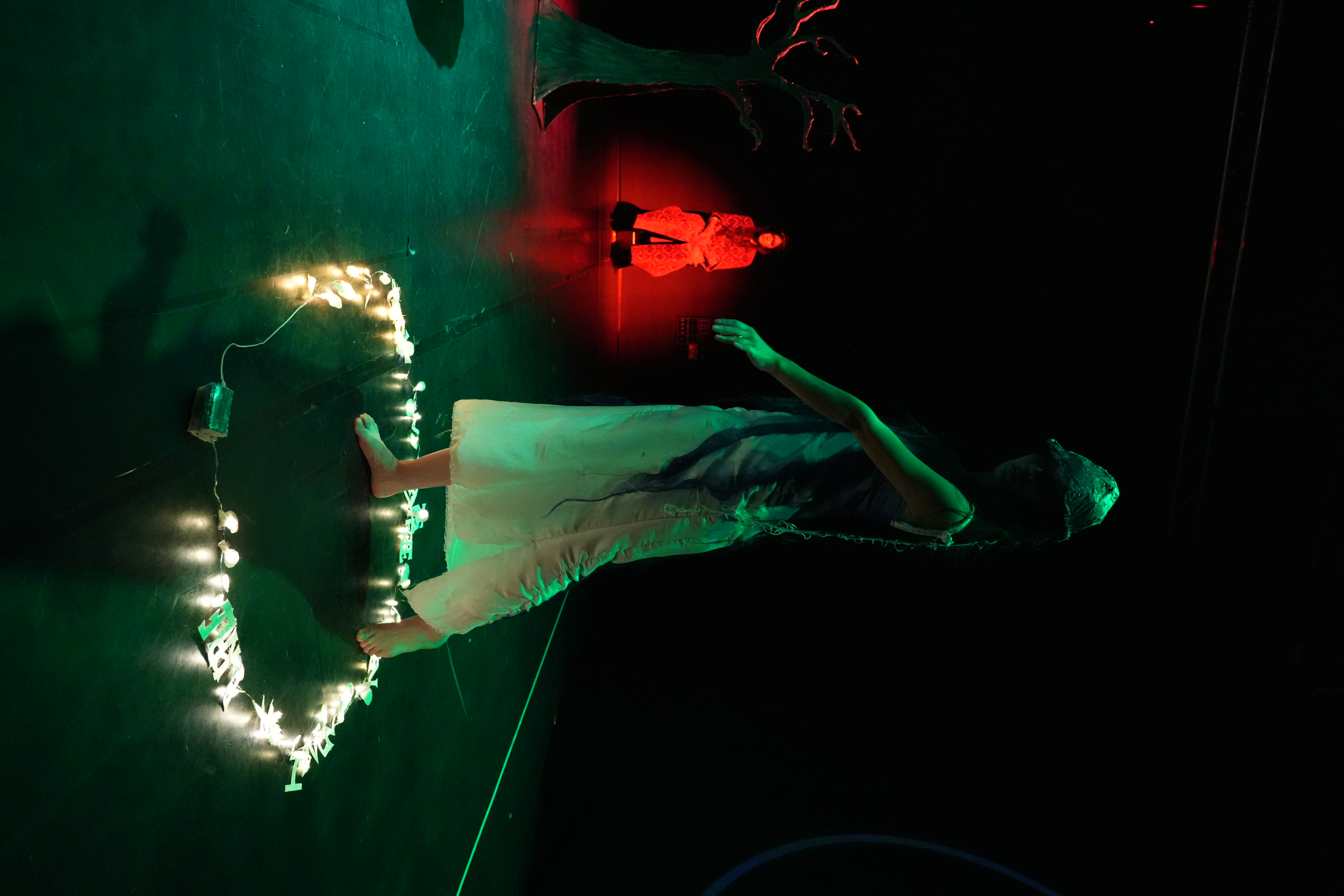 CAST; Vermin: Florence Anastasia, Nonames: Sungyeon Kim Céleste Langrée Fin Atkin Iman Gu Nurin Tengku Sadie Martin Dann Xiao. CREATIVE TEAM; Playwriter: Florence Anastasia Director: Natsuko Yonezawa Production Manager: Natsuko Yonezawa Producer: Jade Qiu Set Design: Zidi Wu Costume Design: Jade Qiu Vermin Costume : Fin Atkin Vermin Set: Louie Thornton Lighting Design: CSM Performance Technical Team Project Mapping: Natsuko Yonezawa& Xuan Ma Sound Design: Natsuko Yonezawa& Céleste LangréeSound Moving image: Sungyeon Kim& Florence Anastasia. Hair & Make up: Momo Mao Make up Assistant: Jade Qiu Make up for Vermin: Sungyeon Kim. Poster Design: Momo Mao & Sungyeon Kim.